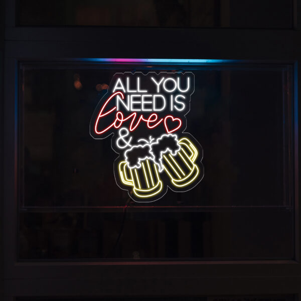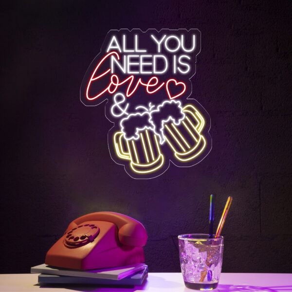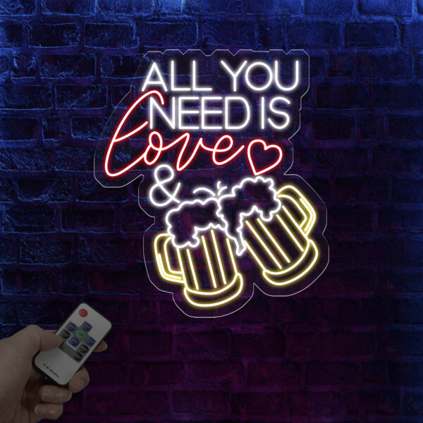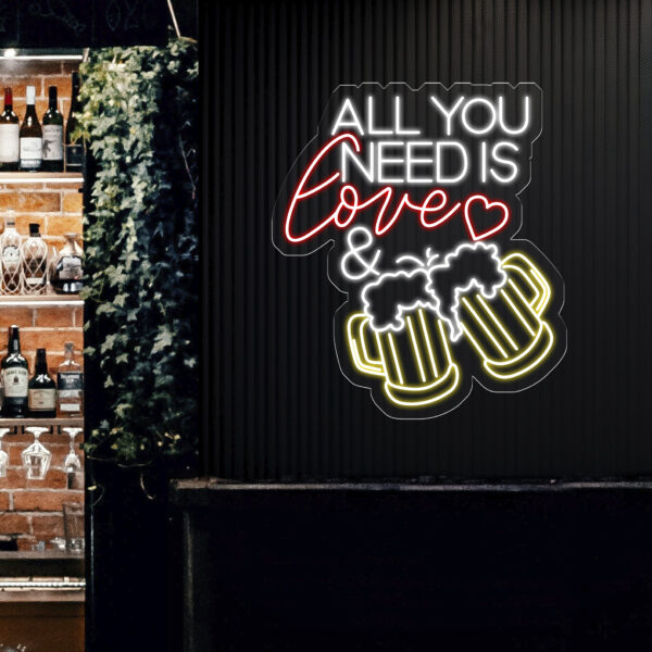 All You Need Is Love & Beer Neon Bar Sign, LED Light Sign for Home Bar Wall Decor, Basement Sign, Man Cave Sign, Unique Gifts for Him