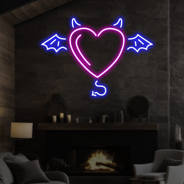 Custom Name Devil and Angel Heaven Or Hell Neon Sign, Custom Party LED Neon Light Wall Shop Decor Bar Decoration Heart Wing Halloween Gift