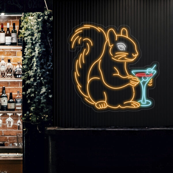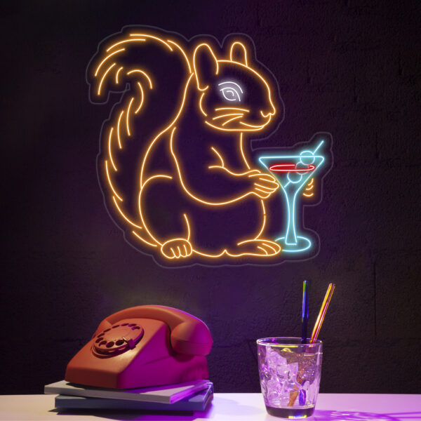 Custom Squirrel Drinking Martini Neon Sign, Squirrel Drinking Martini Led Light, Japan SquirrelLed Light, Restaurant Neon Light, Coffee Shop