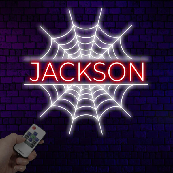Custom Superhero Spider Name Neon Sign, Personalized Spider Web Name Sign, Superhero Name Wall Art, Birthday Decor, Kids Christmas Gift