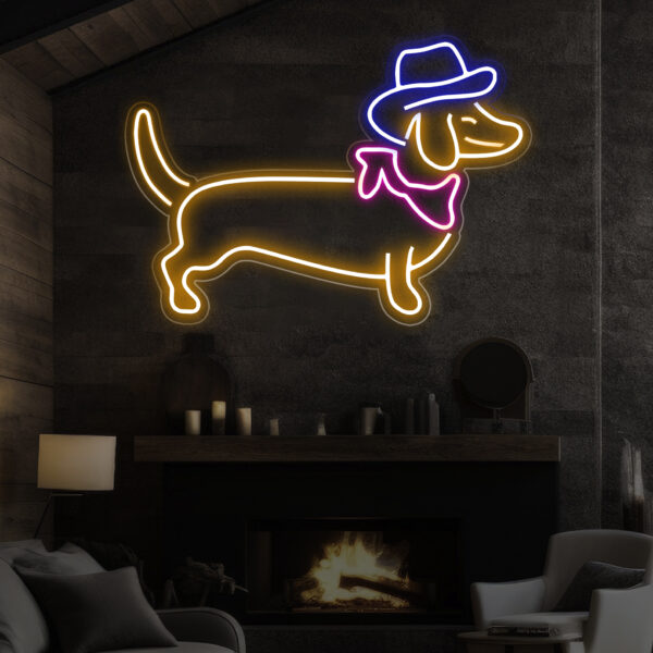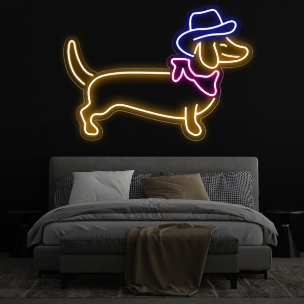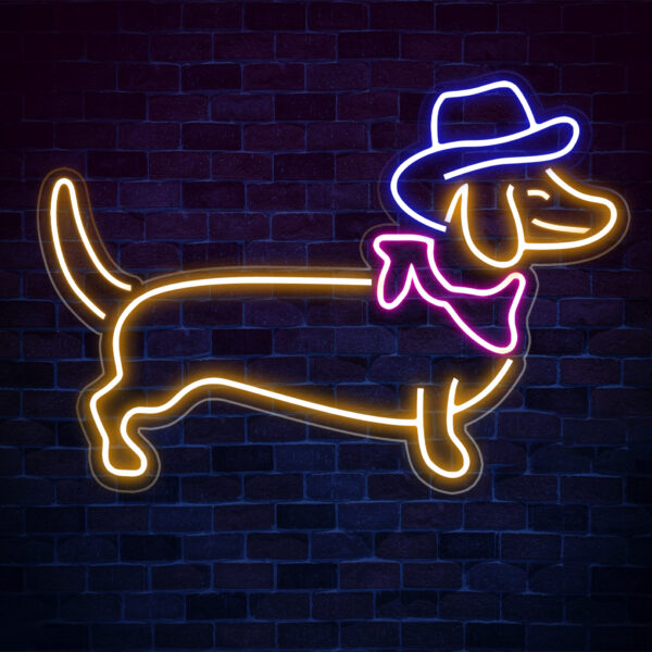 Dachshund Neon Sign, Cute Cowboy Hat Dog LED Neon Light, Light Up Sign for Bedroom Decor, Pet Shop Art Wall Decoration, Bar Decor