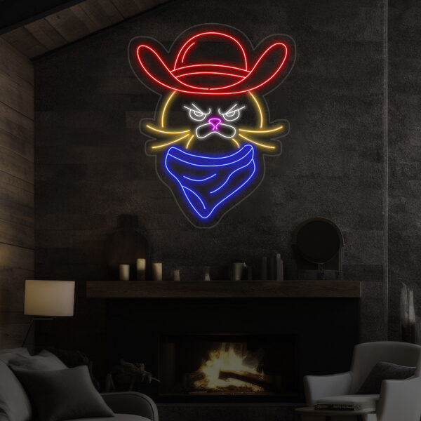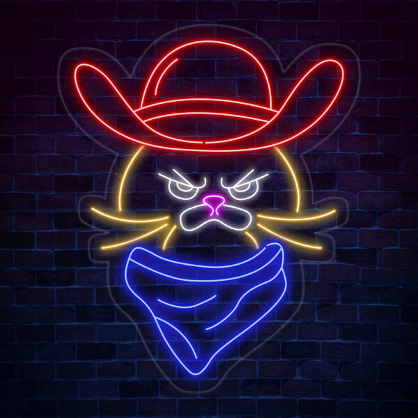 Grumpy Cowboy Cat Neon Sign, Cowboy Cat Led Sign, Custom Neon Sign, Pet Shop Wall Decor, Cat Shop Light Art, Gift For Kid, Cat Lover Gifts