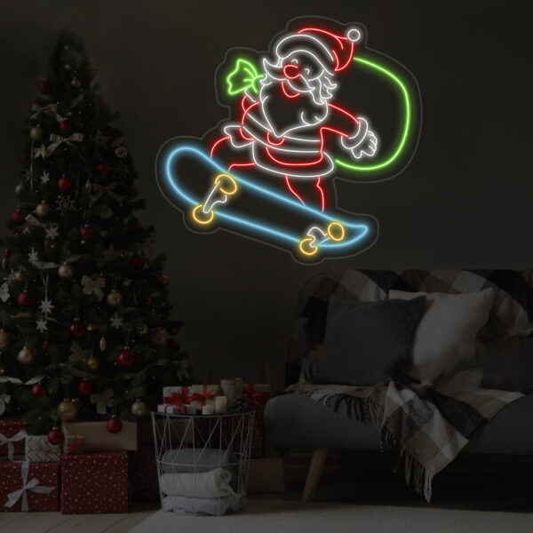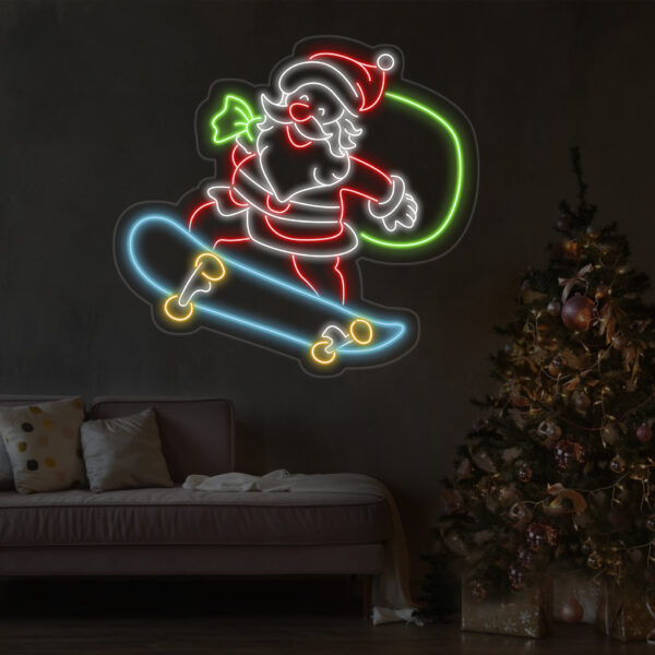 Santa Claus Skatebroading Neon Sign, Christmas Led Sign, Santa Led Light, Merry Christmas Neon Light, Christmas Decoration