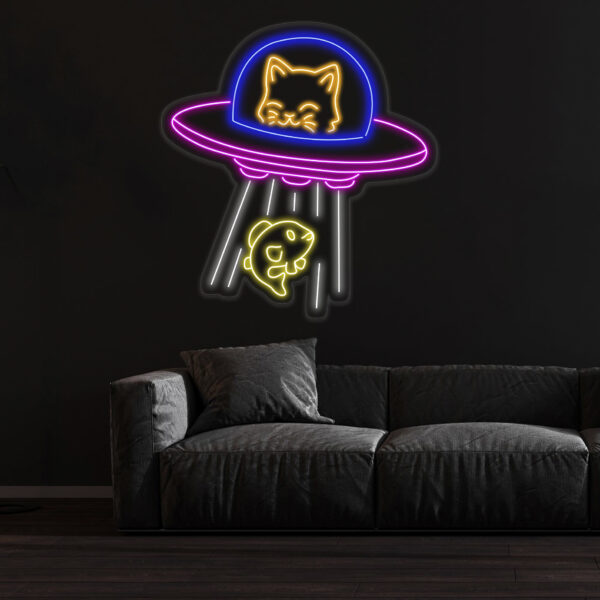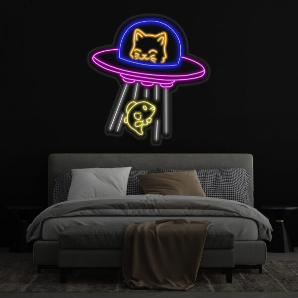 UFO Cat Abduction Fish Neon Sign, Custom Neon Sign UFO Lamp, Ufo Cat LED Light, Animal Lover Neon Light, Gift for Kids, Bedroom Decor
